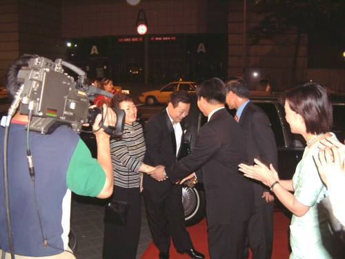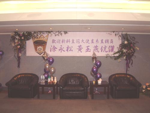 專屬禮車抵達國際會議中心門口,6名迎賓舞者著希臘式服裝立禮車兩側,由安麗主管為皇冠大使開車門,並已與會場同步線上直播,讓已經抵達會場之直銷商一起分享喜悅。