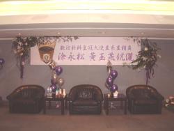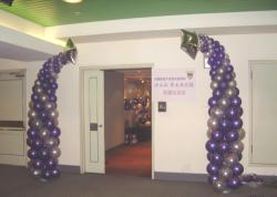 精緻的擺飾:以皇冠大使夫婦最喜愛的紫色花卉配上活潑的氣球點綴