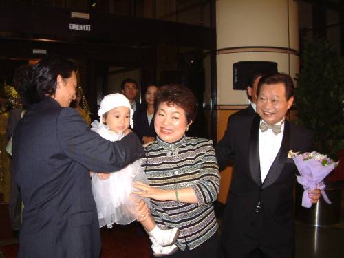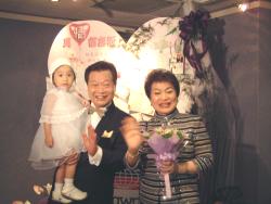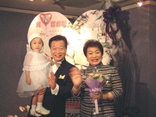 新科皇冠大使涂永松 黃玉燕伉儷與其可愛的小孫女於真情留言版旁合影