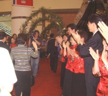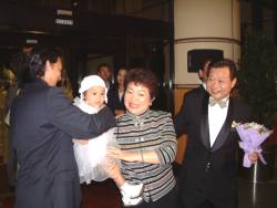 步上紅地毯,可愛的小孫女、及其12位下線手持花門,迎接新科皇冠大使涂永松