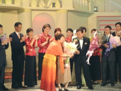 新科皇冠大使 涂永松 黃玉燕夫婦獻花給母親