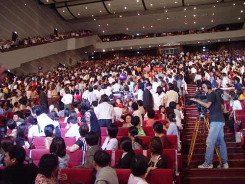 由全場直銷商合力由上而下傳遞至舞台第一排