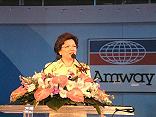 不斷調整、提升,挑戰更高目標! 「年會是安麗每年最大規模的活動,也是慶團圓的時刻,一方面可以回顧過去,慶祝我們取得的成就,一方面可以展望未來為自己定下更高的目標、許下更大的承諾,身為安麗大中華地區的負責人,我也代表來自大中華其他地區所有的職員、營銷人員向大家致以最誠摯的問候,大中華地區在過去一年業績增長了75%,是在各地經濟低迷時比較好的成績。」 「當然公司不會因這些成就而感到自滿,因為市場的競爭非常激烈,如果我們不是不斷的進步就等於是退步,如果我們不是不斷的提昇就等於是落後,所以我們還是不斷的調整、提昇,希望找出新的突破點,希望做的更好。」 「安麗公司為中國大陸的營銷人員提供的發展方針,我覺得適用於大中華地區,也適用於全世界的安麗天地,裡面包含了我們的發展的目標和共同的價值觀,也能表達安利的核心價值觀:內求團結、外求發展、優化管理、強化服務、重視人才、珍視商譽、努力實幹、創建輝煌。希望大家能得到啟發、互相勉勵,我們一起努力創建輝煌。」 |