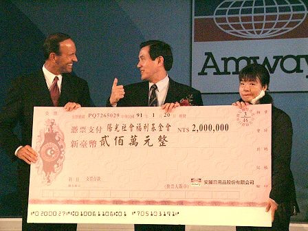 本次年會最有意義的一個活動,就是公益捐款。連續第三年推出的「給他機會•自力更生」公益活動,在由台北市長馬英九代言的公益廣告推出後三週,二萬個毯心抱枕即銷售一空!年會當天,馬市長特別到現場,代表將義賣所得的400萬元捐贈給陽光基金會和立達啟能訓練中心。