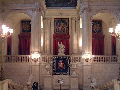 建于十八世紀中葉,比英國白金漢宮還大的馬德里皇宮,以豪華壯麗聞名,寶座廳以金、紅兩色象徵權力與尊貴,是歐洲最負盛名的皇宮之一。牆上刺繡壁飾以及天花板的版畫,件件都是獨一無二的藝術精品。