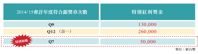 註一:Q12的定義為:2014/15會計內度內,12個月都符合銀獎章資格,或在會計年度內有10個月分符合銀獎