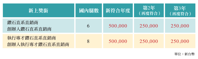 2014/15至2015/16期間新上鑽石至創辦人執行專才鑽石獎銜,且同時符合以下條件: