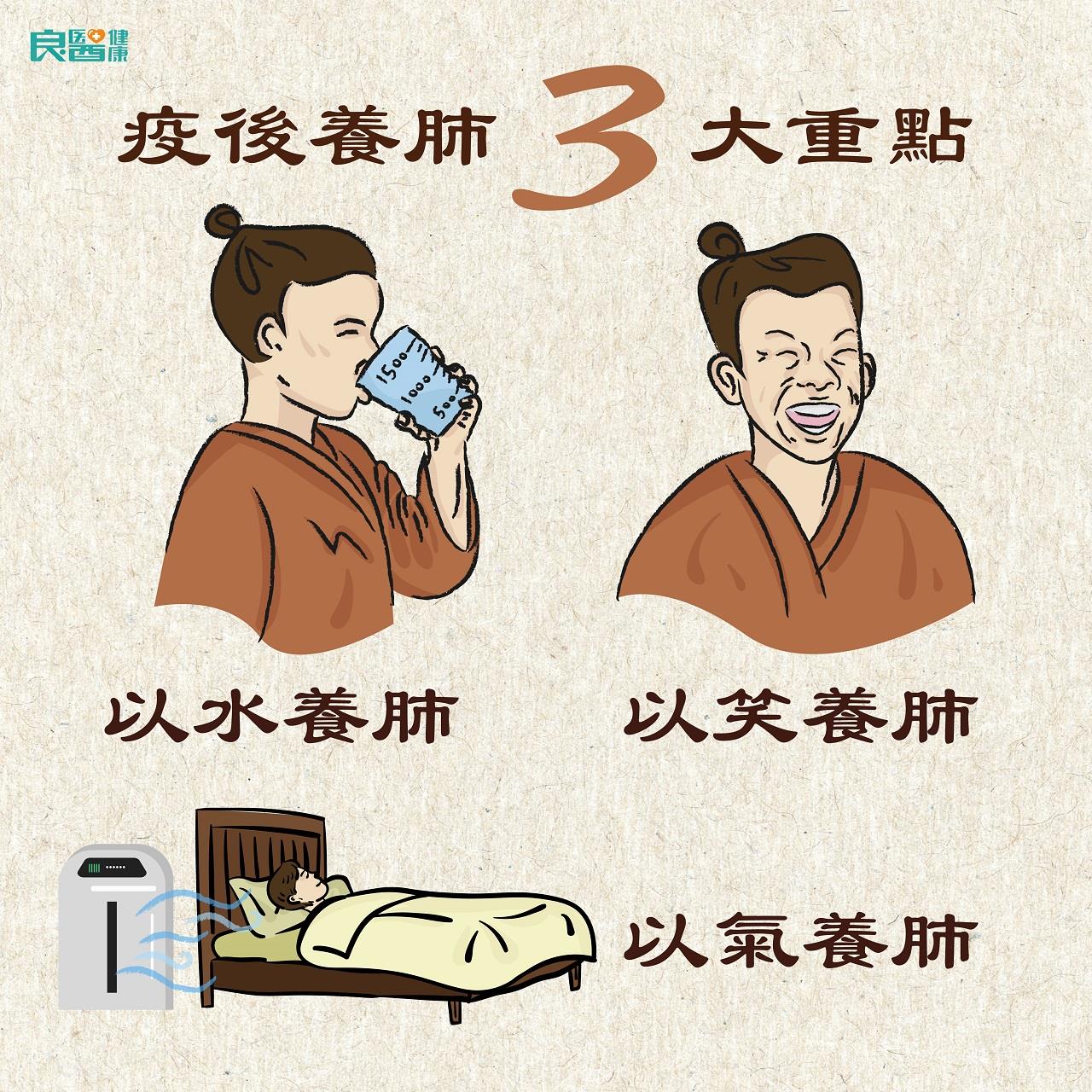 2. 以笑養肺 : 大笑伸展胸肌,可以疏通肺氣、舒緩憂傷。3. 以氣養肺 : 保持家中生活環境、空氣的新鮮與潔淨。