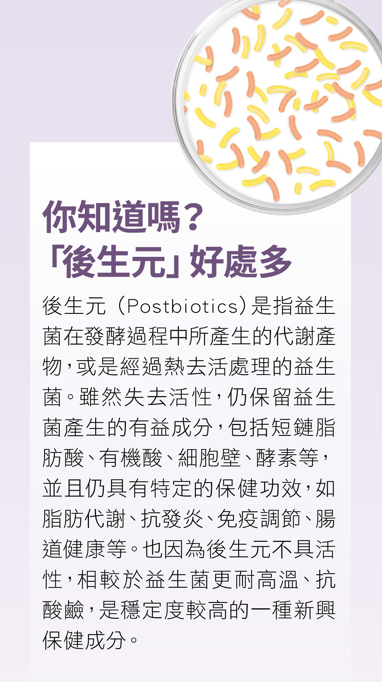 值得一提的是,CECT8145菌株經過最適化的高溫處理後,從益生菌(活菌)成為「後生元」(熱去活的菌),經人體臨床實證,比活菌能更有效減少內臟脂肪面積、縮小腰圍尺寸,瓦解頑固內臟脂肪的效果比活菌更勝一籌!