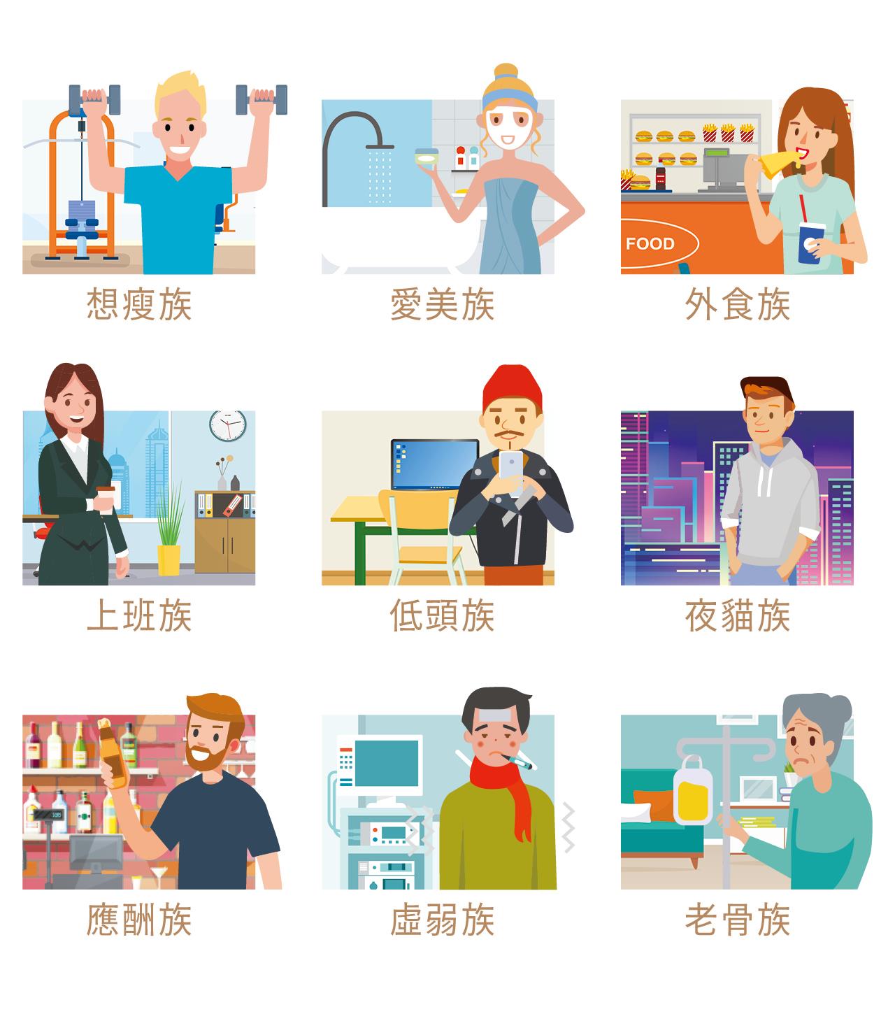 有許多人因職業需要値夜班或日夜輪班,例如醫護人員、空服員、警衛、作業員等,也有一些上班族需要通宵趕工,甚至是晚上精神較好的夜貓族體質,無論是為了工作、考試、玩樂而熬夜,都可能會加重肝臟負擔與造成營養素的流失,特別是維生素B群與C,同時也會打亂生理時鐘,造成睡眠品質不佳、抵抗力下降。愛美女性更可能會因此造成皮膚流失水分、缺乏光澤,引發過敏、乾燥、泛紅等問題。