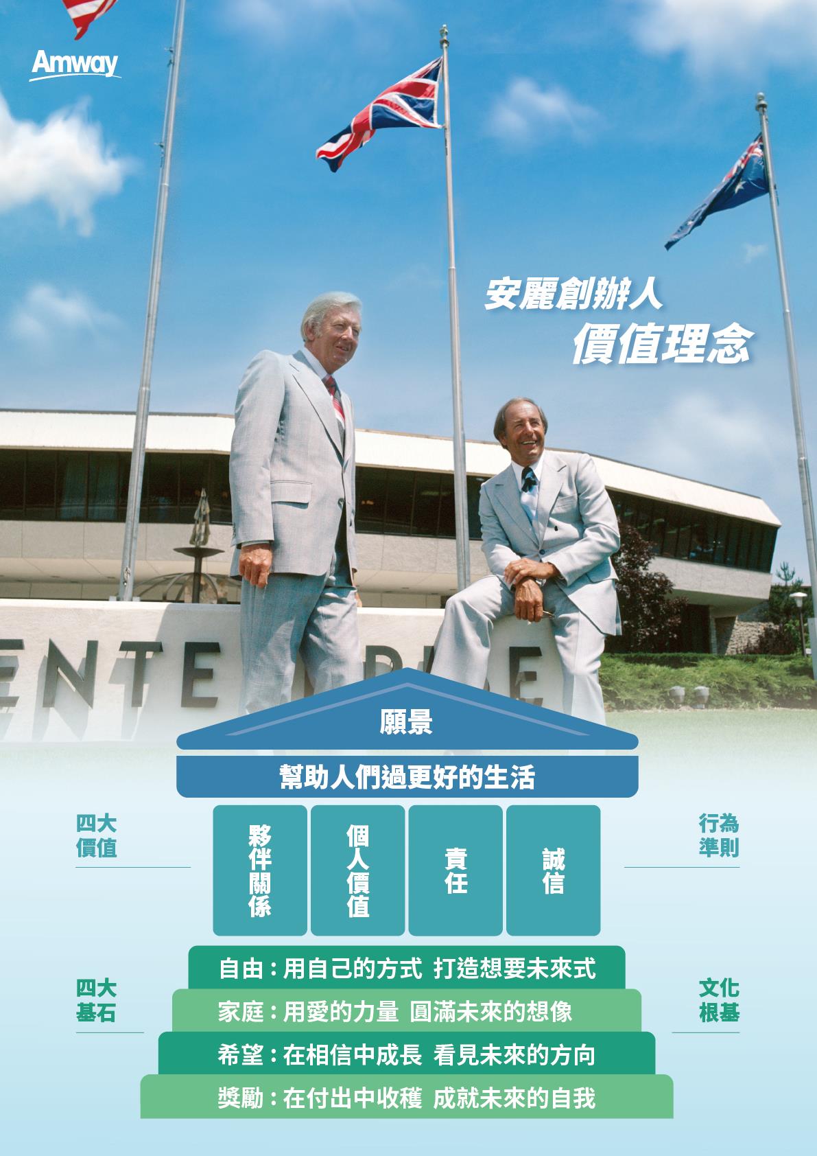 💎夥伴關係──源於兩位創辦人之間終身的友誼,引領著安麗公司與直銷商之間的關係。我們相信合作共贏,彼此支持才能走得更遠。