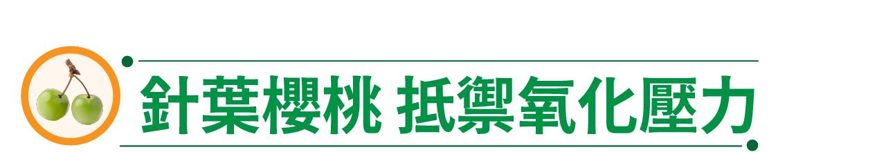 富含天然維生素C,能增強免疫細胞的功能,並促進膠原蛋白合成,幫助黏膜修復和傷口癒合,強化免疫的第一道防線,針葉櫻桃中還含有生物類黃酮,幫助維生素C的吸收利用,提升抗氧化功能,加強第二道防線。