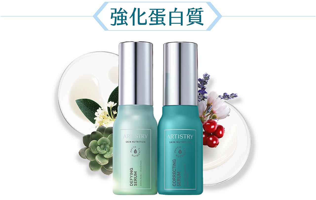 「青春水潤淨化精華」與「賦活緊緻抗老精華」,就像是肌膚的蛋白質守衛隊,從預防到修護,全面穩固膚況◦青春水潤淨化精華內含日本梅萃取,能抑制糖分與肌膚蛋白產生交聯反應,幫助預防AGEs(糖化終產物)形成,使肌膚維持彈潤、透亮、告別黃化暗沉。賦活緊緻抗老精華則富含康普茶發酵物,能有效抑制糖化、幫助代謝AGEs,同時修護膠原蛋白結構,讓肌膚從底層恢復緊實與彈力,強化肌底的蛋白營養力。