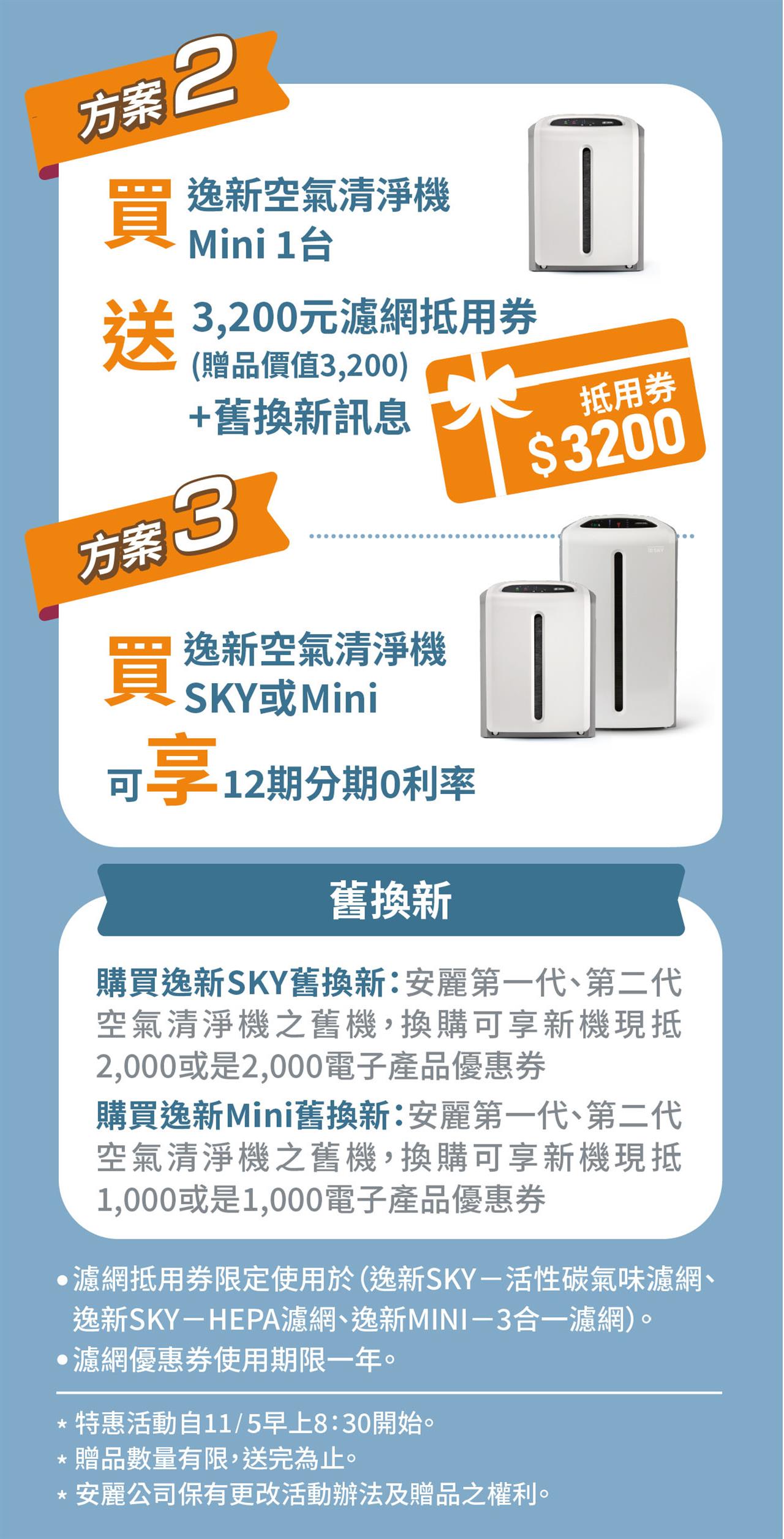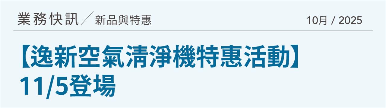 【逸新空氣清淨機特惠活動】11/5登場