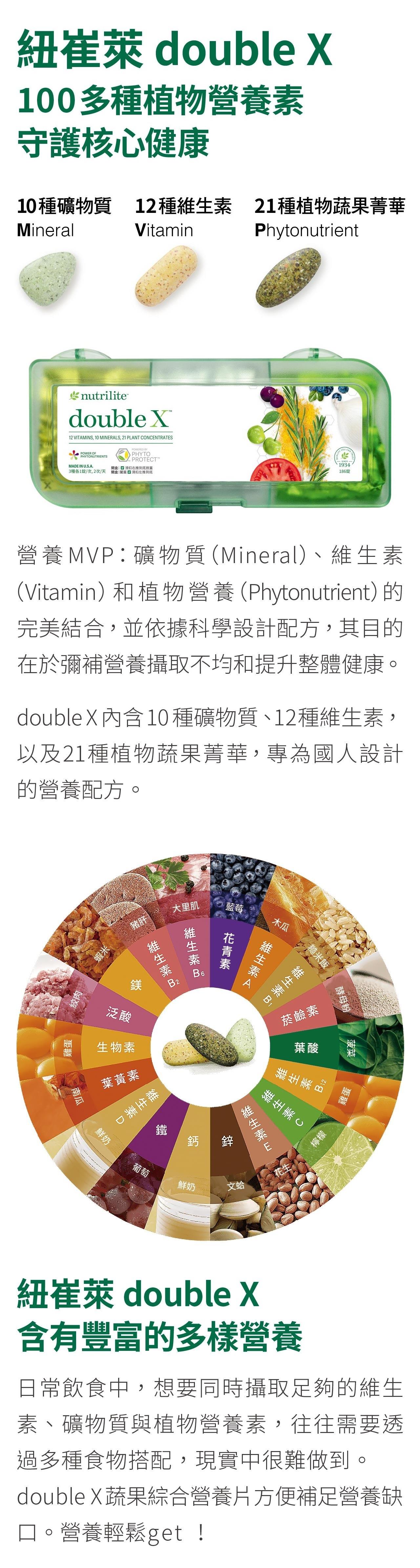 相較市售維生素礦物質產品 double X植物營養更豐富