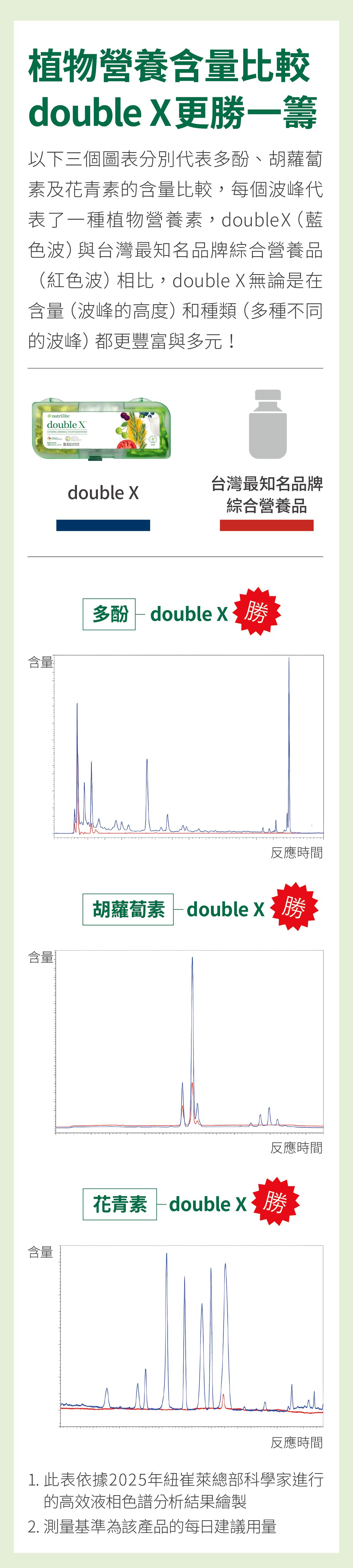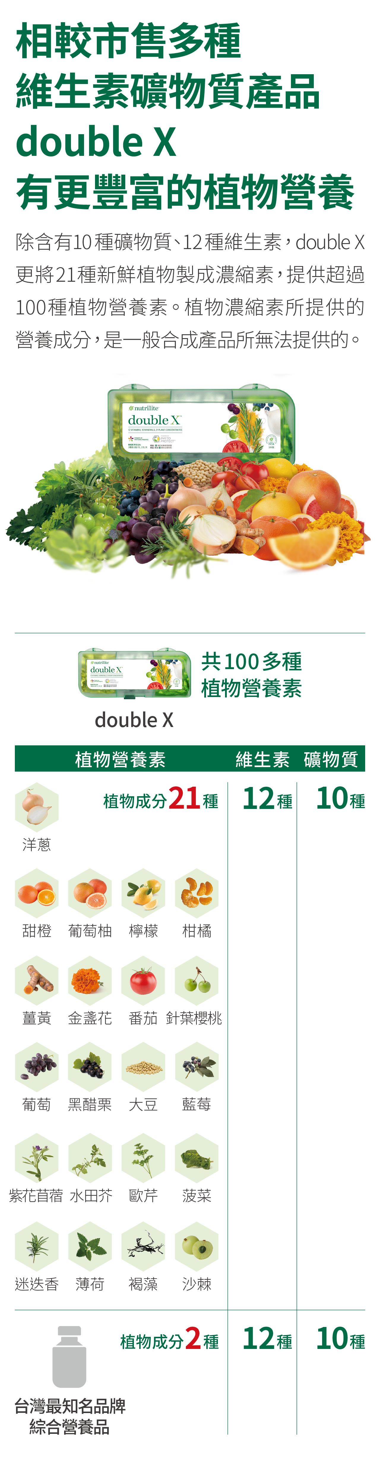 相較市售維生素礦物質產品 double X植物營養更豐富