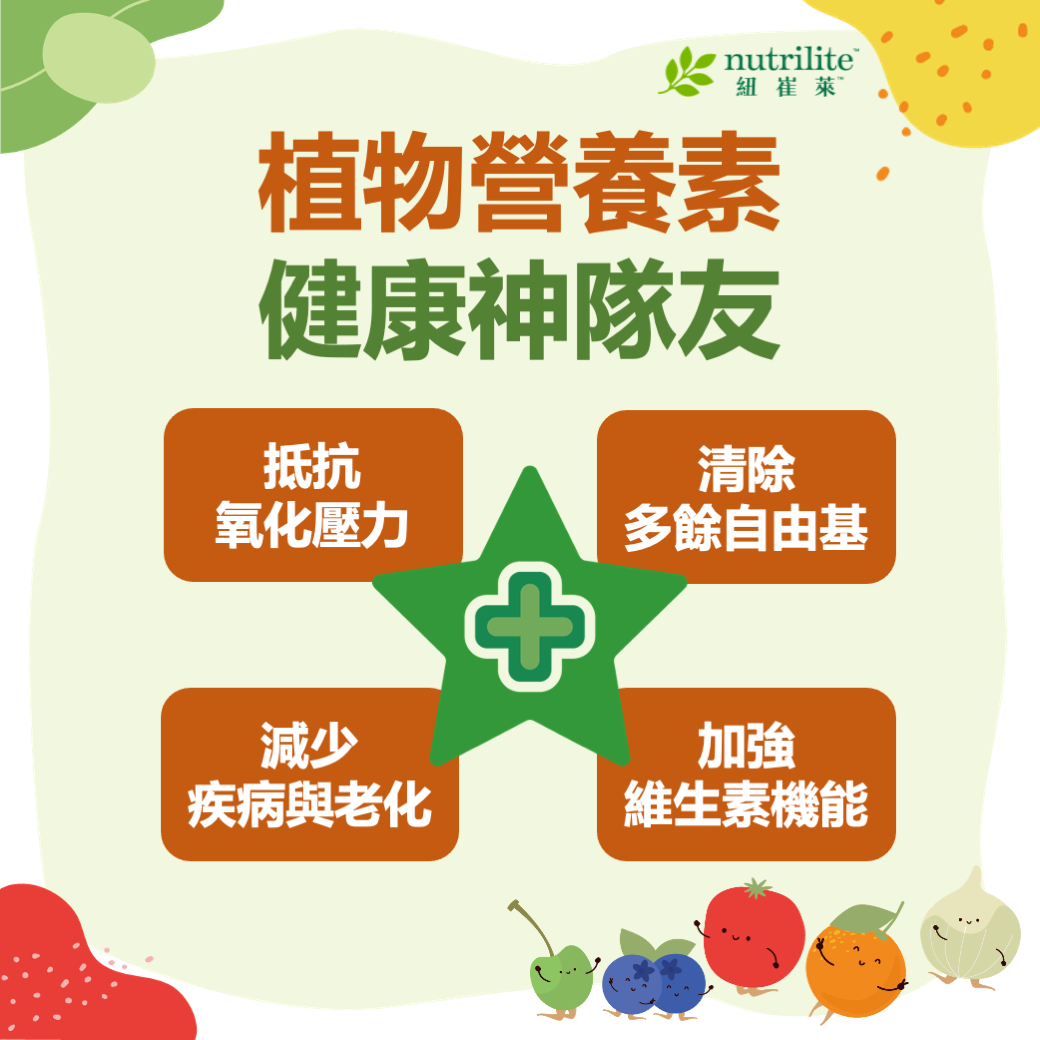 簡單來說,攝取多樣的【植物營養素】,就像幫身體「開外掛」,讓我們少生病、慢老化、健康又有活力!