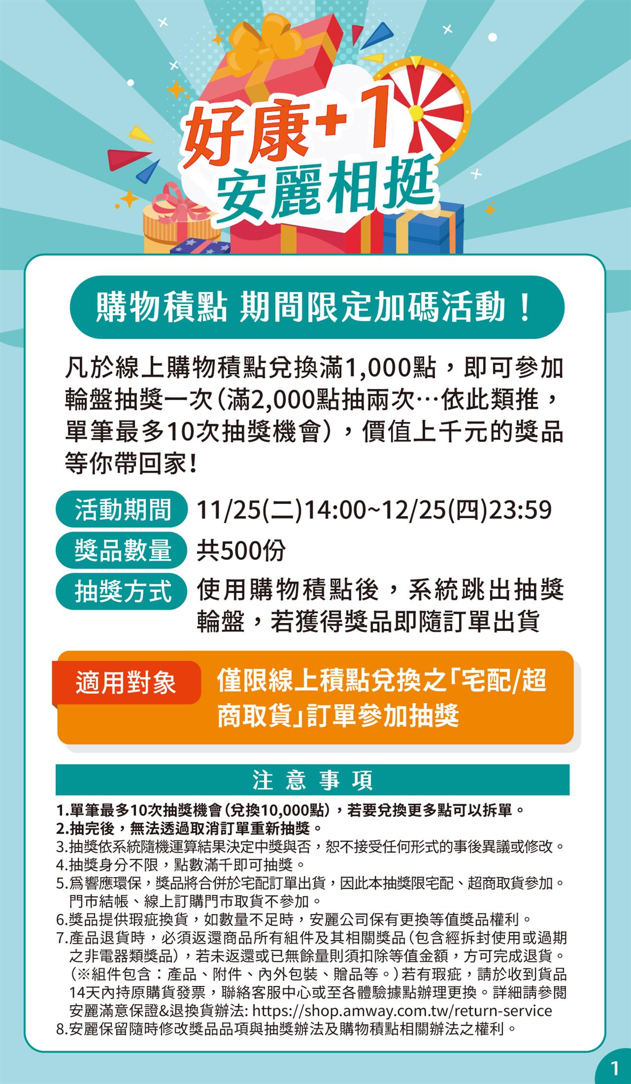 「安麗最挺你」 好康+1 購物積點抽獎活動開跑
