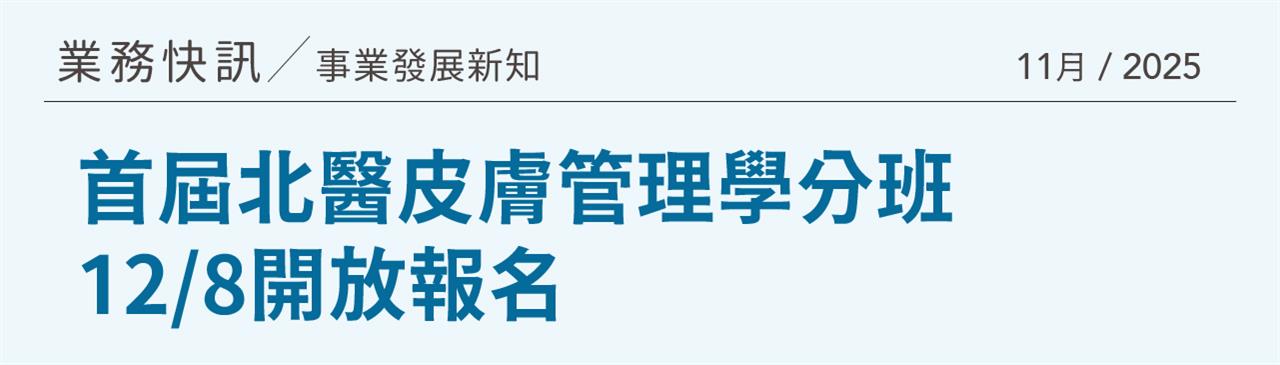 首屆北醫皮膚管理學分班 12/8開放報名