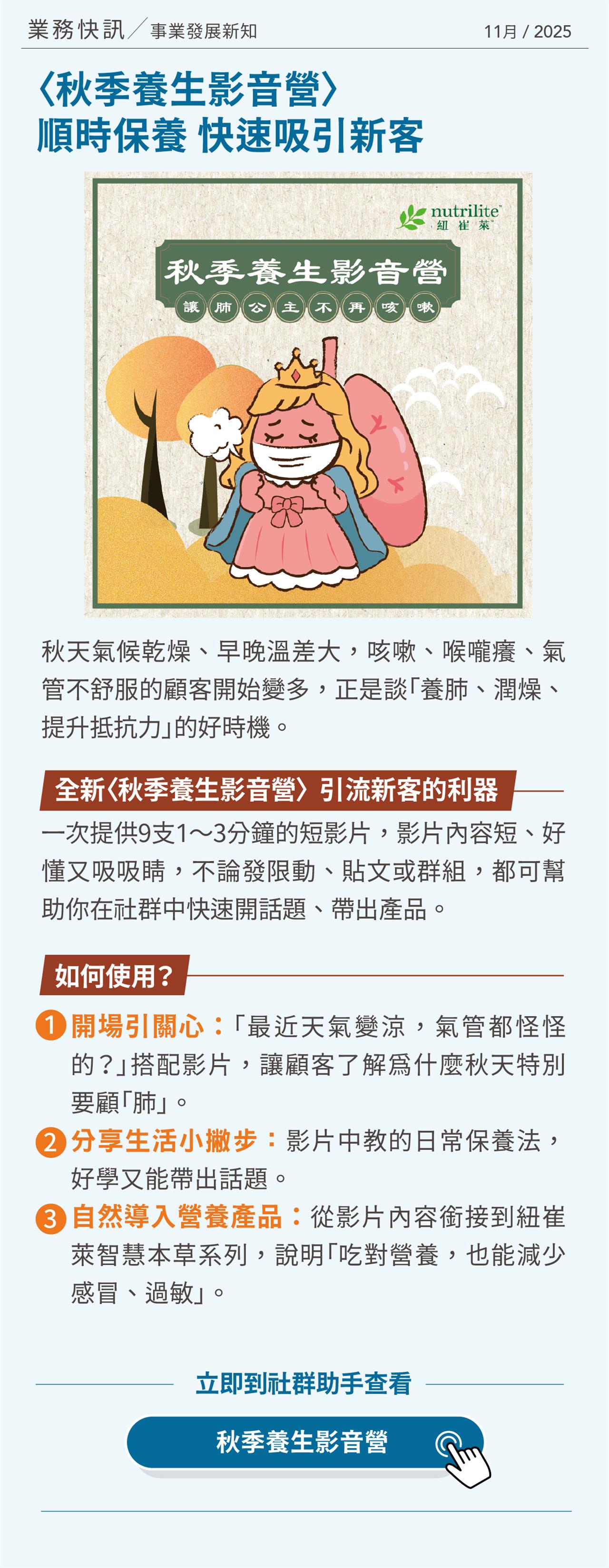 〈秋季養生影音營〉順時保養 快速吸引新客
