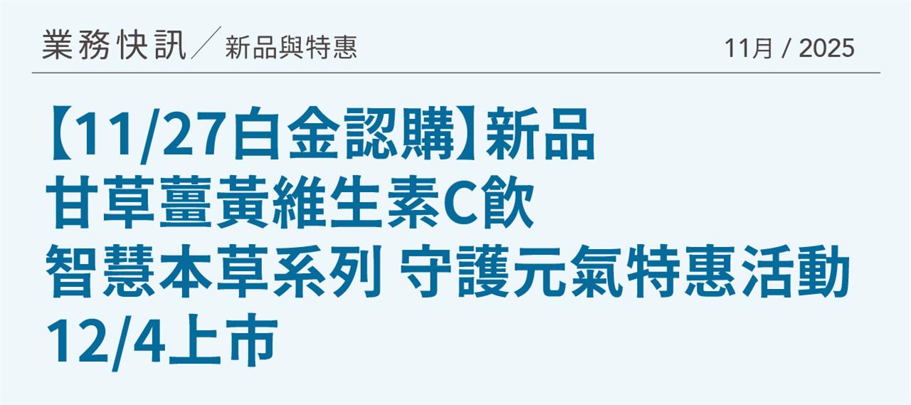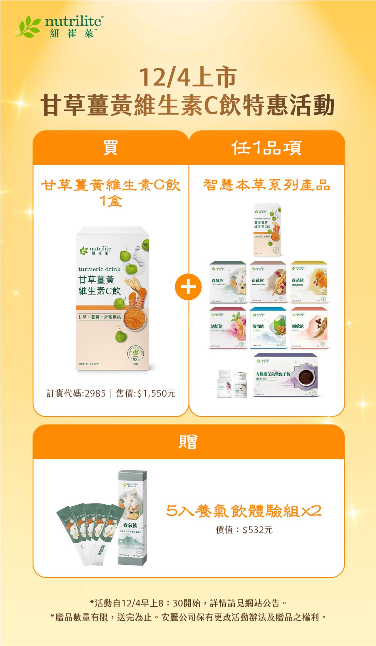 【11/27白金認購】新品甘草薑黃維生素C飲| 智慧本草系列特惠 12/4上市