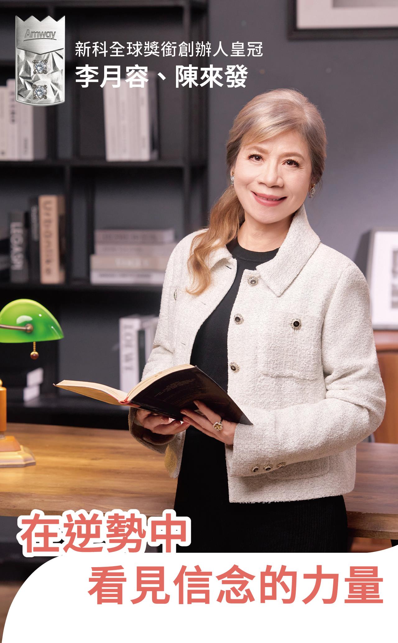 全球獎銜創辦人皇冠李月容,以其不凡的毅力與遠見,在安麗事業的道路上,繪製了一幅「在風暴中展翅高飛」的壯麗畫卷。面對直銷風暴、亞洲金融危機、美國雷曼次貸危機、新冠疫情及全球關稅衝擊等重大挑戰,她不僅未曾被擊倒,反而屢次在「最不可能的時刻」突破自我,實現晉升。從內向害羞的會計,到跨國團隊的領袖,40年來,李月容堅守創辦人價值理念,穩定地穿越各種風浪,逆勢而上,改變了無數人的生命。
