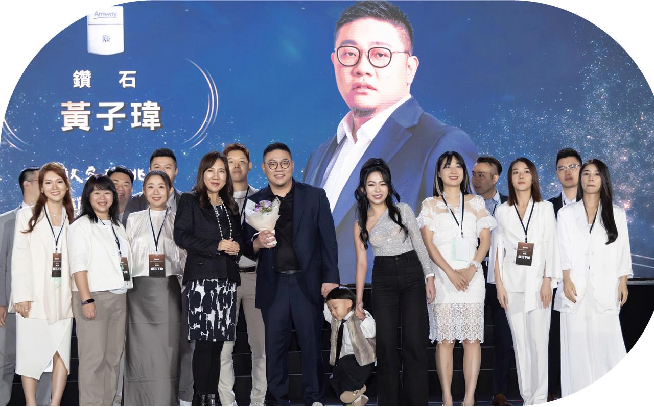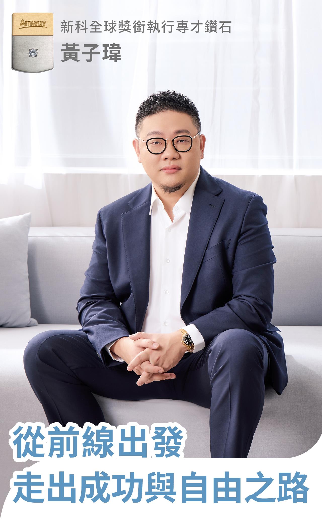 從小不愛唸書,卻耳濡目染父母的創業精神,黃子瑋很年輕便踏上創業之路。懷抱夢想勇於嘗試,卻讓原本小康的家庭陷入負債困境,幾番挫折磨練出他勇於突破的特質。成家後,選擇投入母親多年經營的安麗事業,低風險、穩健發展的特性,正是他理想中的方向。今年更連升兩階,成為全球獎銜執行專才鑽石。他始終相信:路是自己選的,就要走在最前線、全力以赴,帶著團隊與家人走向真正的自由之路!