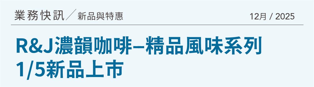 R&J濃韻咖啡-精品風味系列 1/5新品上市