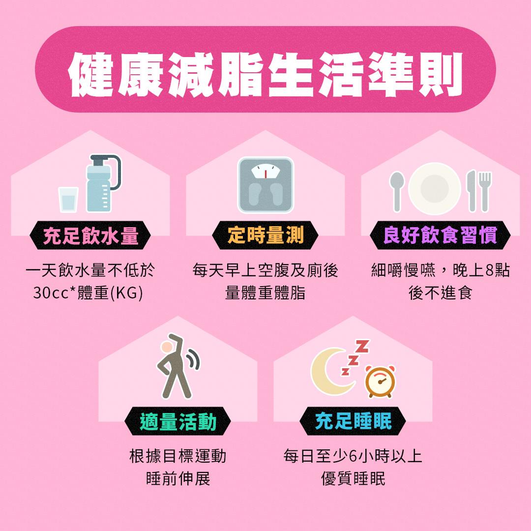 這張是從今天開始要認真遵守的五大生活準則⚠可以幫助你的減脂路更加順利