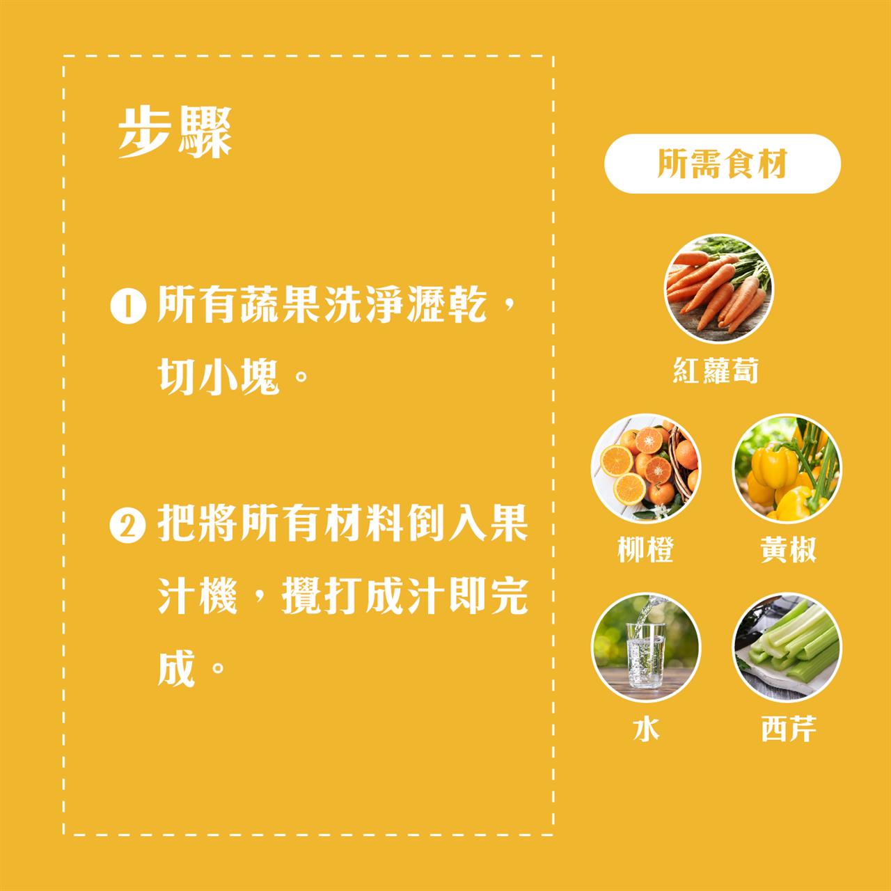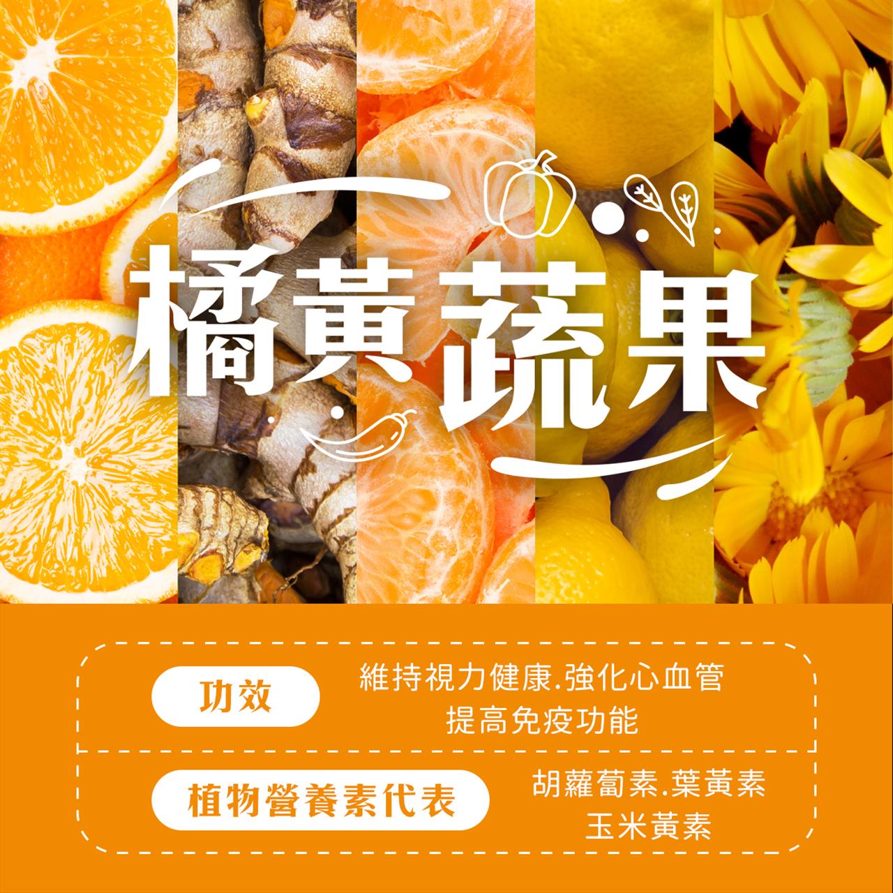 它們包含甜橙、薑黃、檸檬...等,富含胡蘿蔔素、玉米黃素、葉黃素,可以維持視力健康、強化心血管等功能喔!