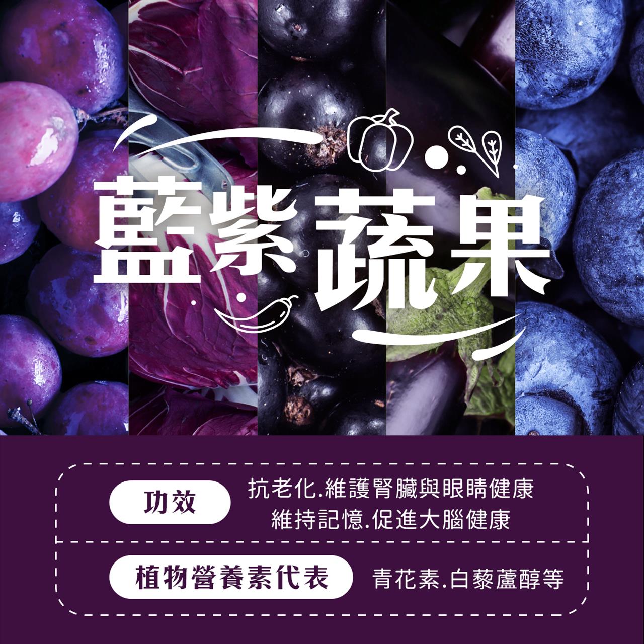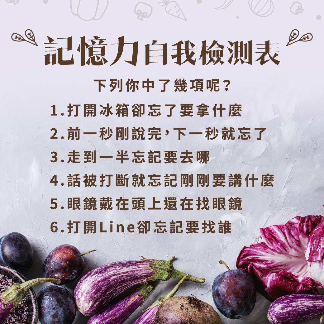 其實研究指出,台灣國人最缺乏的就是藍紫色蔬果的飲食,包含紫甘藍、葡萄、茄子..等,它們富含花青素,可促進大腦、維持記憶與抗老化喔!💜
