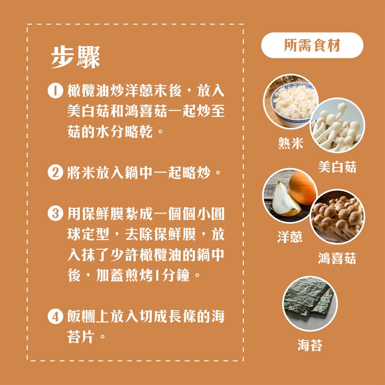 今天第五天,我們要挑戰一下,要開火下廚囉! 這個含有多種菇類和洋蔥的飯糰,好吃又營養🥰小朋友也會喜歡吃~