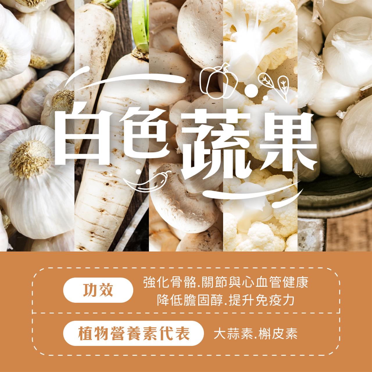 白色的蔬果其實很常見,因為他最常被當作料理的調味配角使用🤔 那些你忽略的小角色,其實是促進健康的狠角色😂