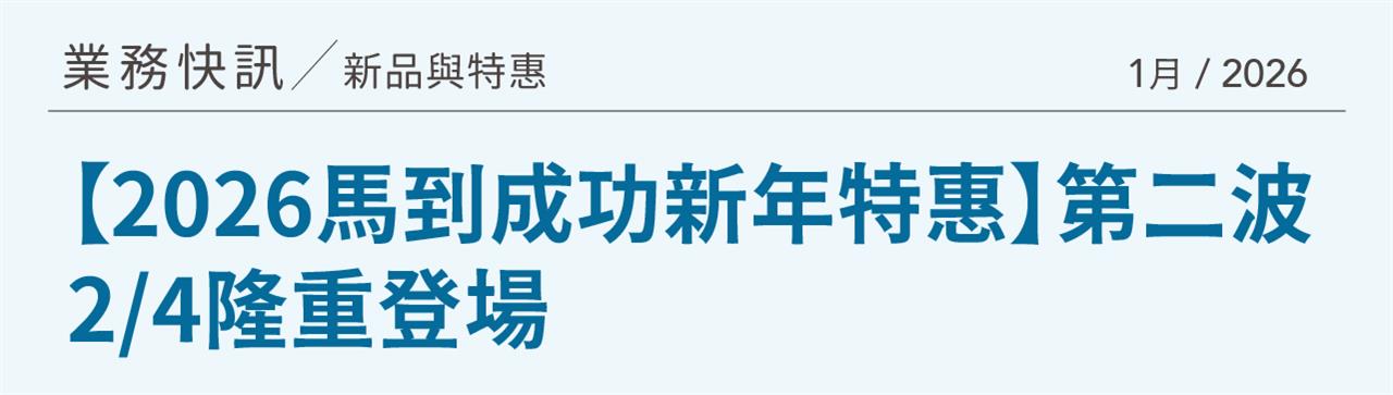【2026馬到成功新年特惠】第二波 2/4隆重揭幕