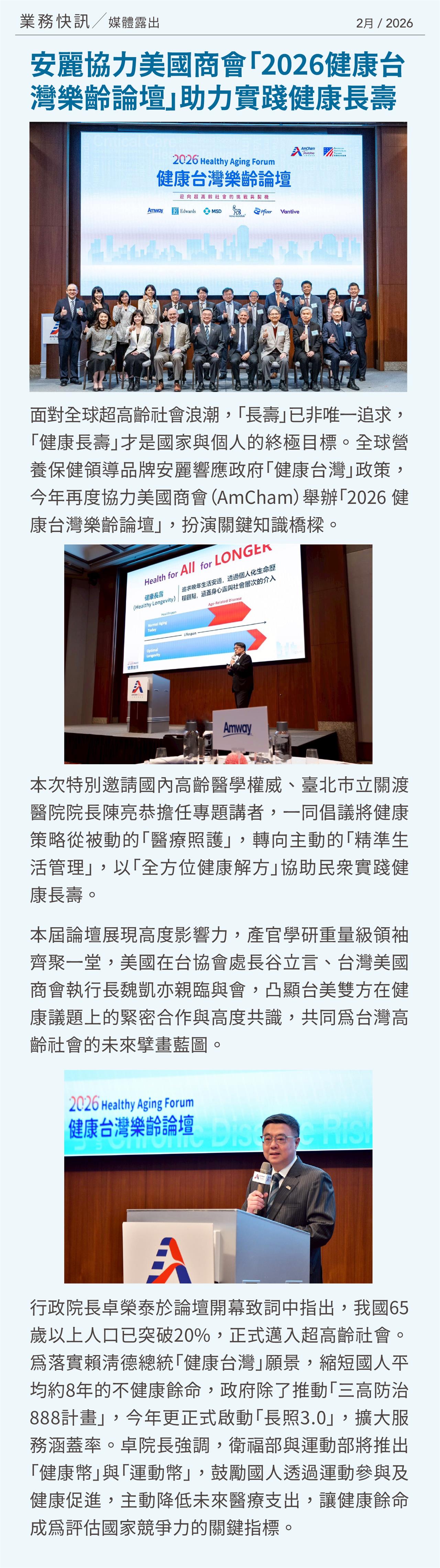 安麗協力美國商會「2026健康台灣樂齡論壇」助力實踐健康長壽