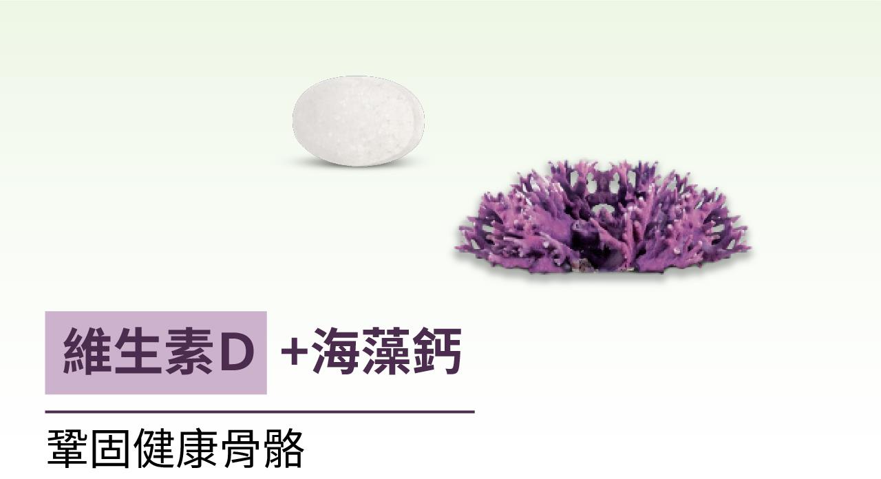 海藻鈣:來自純淨海域的海藻鈣,提供天然鈣來源的同時還有多種微量元素,吸收加穩定、溫和不刺激,搭配維生素D更精準地引導鈣質進入骨骼,有效存骨本。