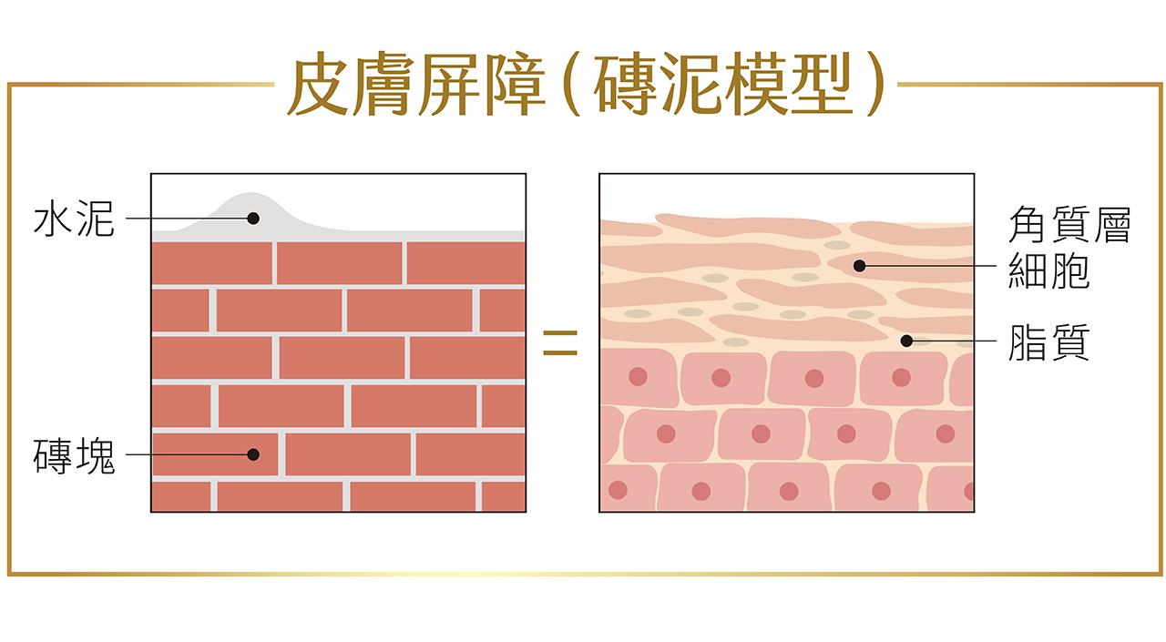 我們可以將角質層比喻為「磚牆結構」:角質細胞是磚頭,而脂肪則是支撐磚頭的水泥。資深醫學美容醫師郭昭晞說明,這些「水泥」負責維持角質層的保水性。當油脂充足時,能保護細胞內的水分不蒸散,讓皮膚看起來水嫩透亮;若油脂流失,細胞直接暴露在空氣中,水分就會迅速散失,導致防線崩塌,進而引發乾燥、泛紅甚至光老化。
