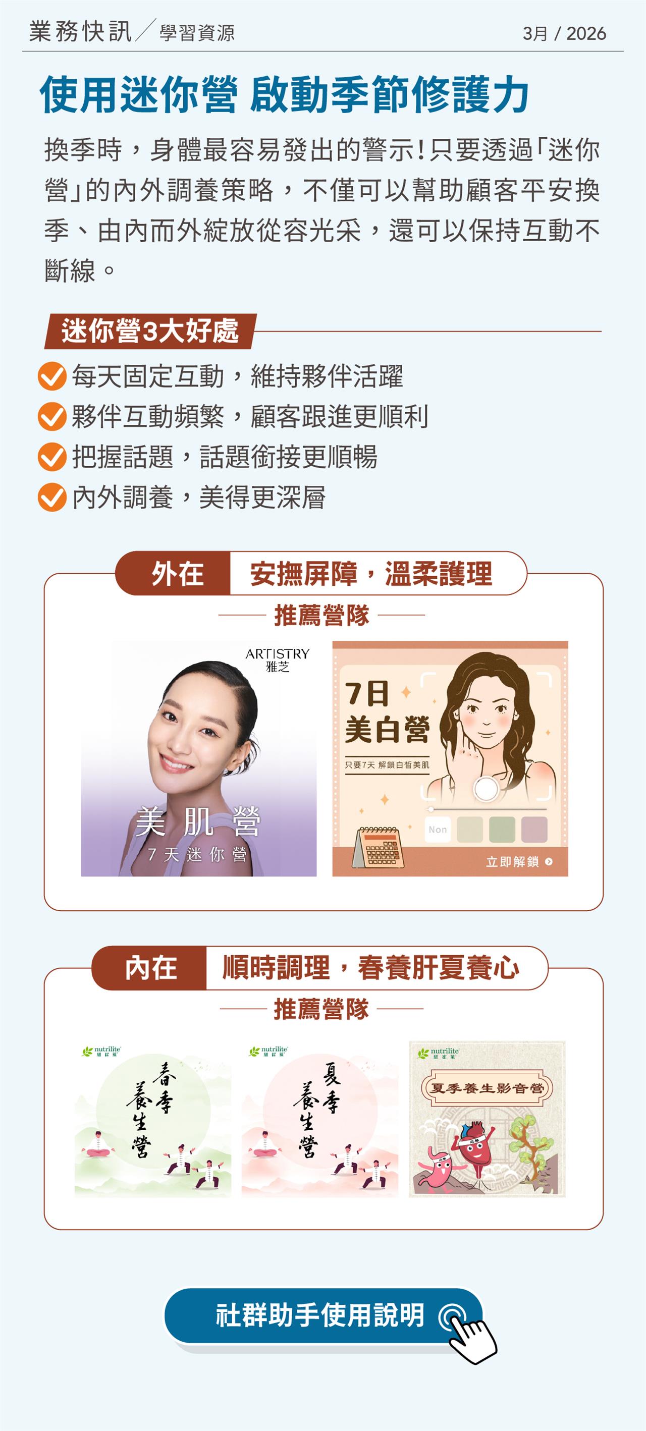 使用迷你營 啟動季節修護力