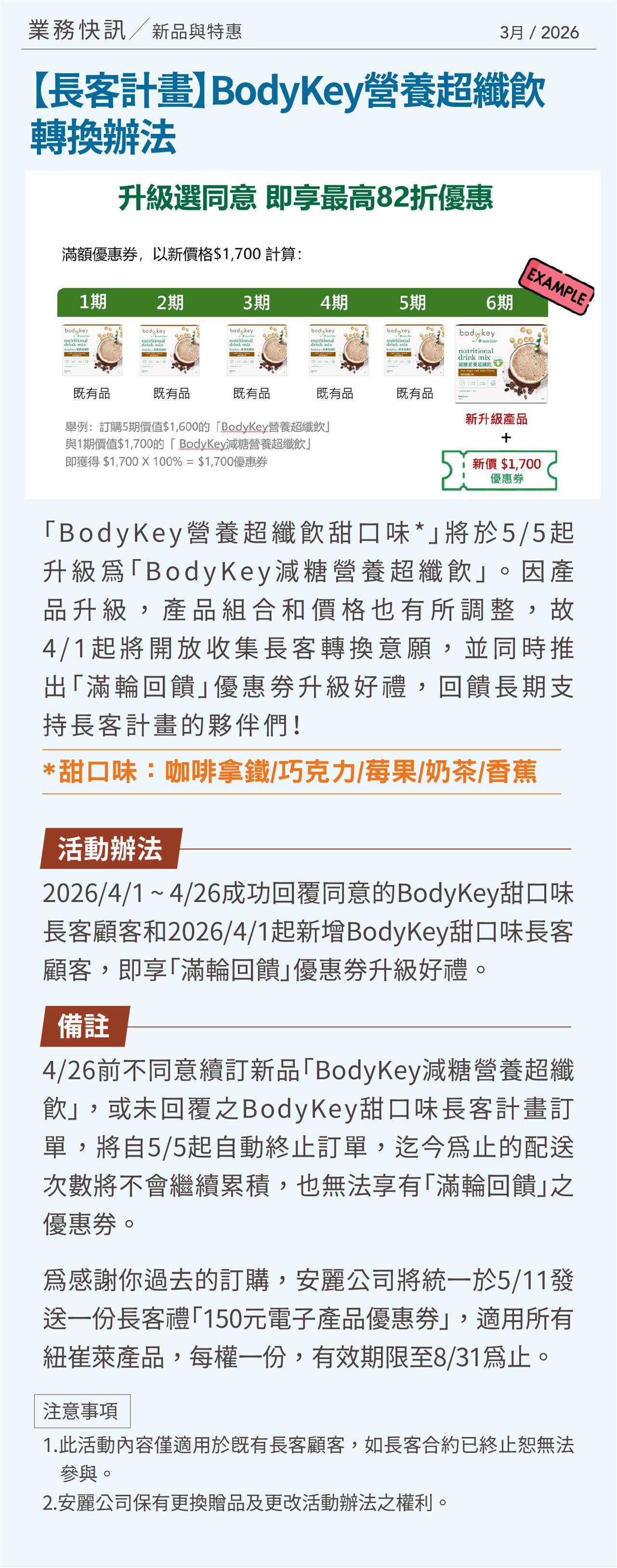 【長客計畫】BodyKey營養超纖飲 轉換辦法