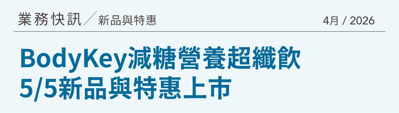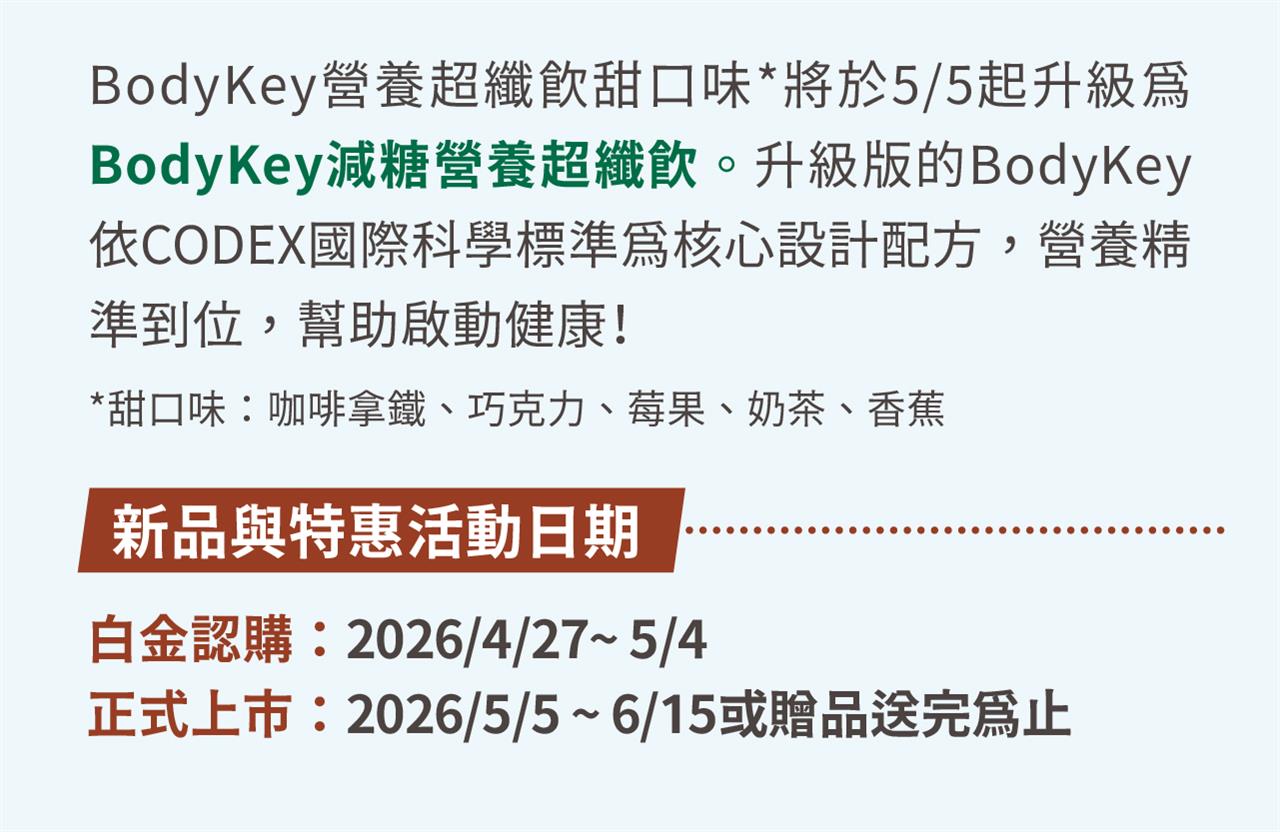 BodyKey減糖營養超纖飲 5/5新品與特惠上市