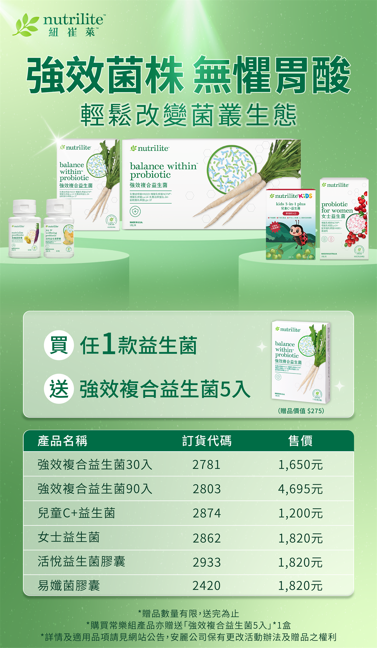 強效菌株無懼胃酸 益生菌特惠10/3登場