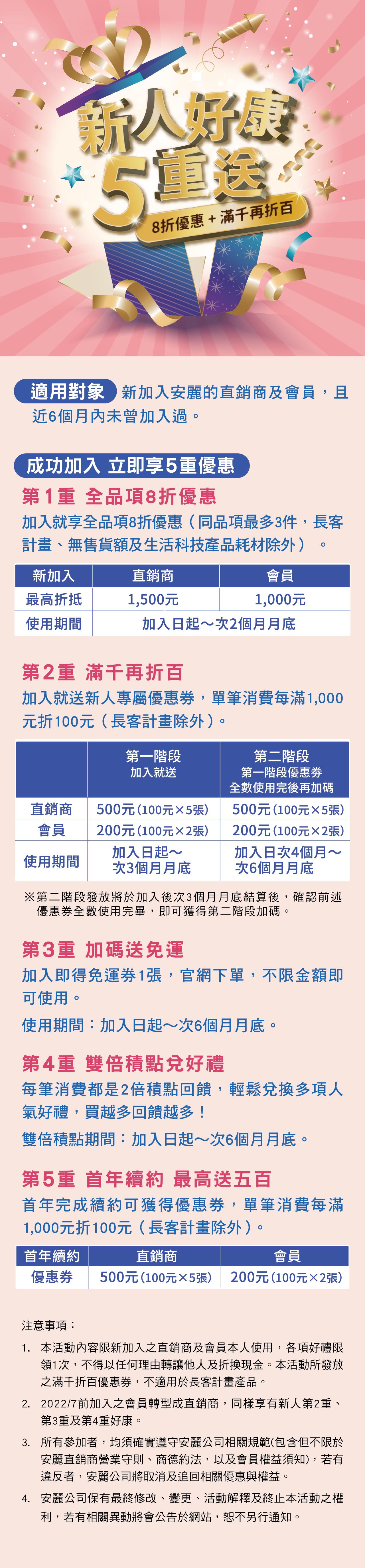 新人好康5重送 8折優惠+滿千再折百