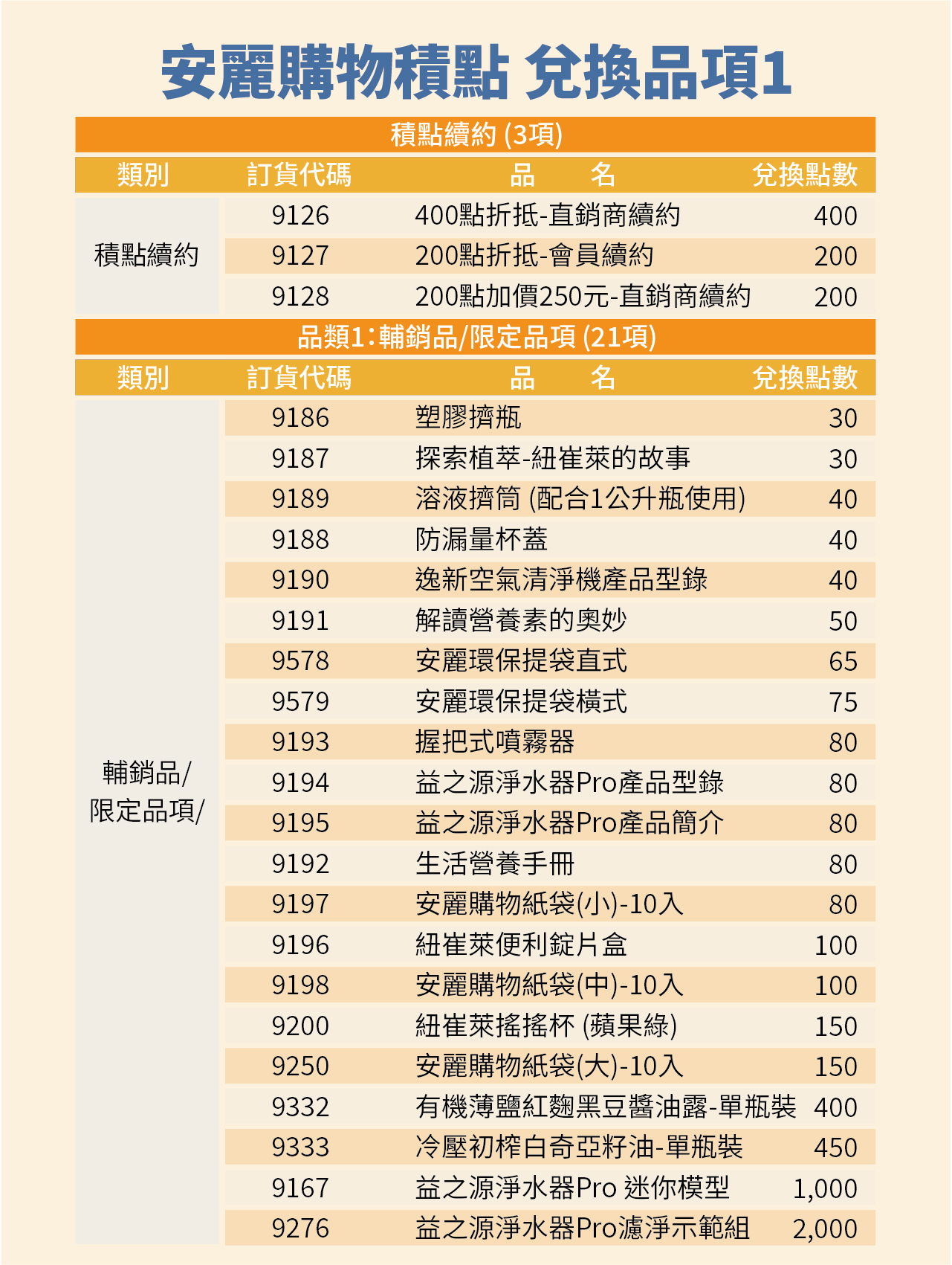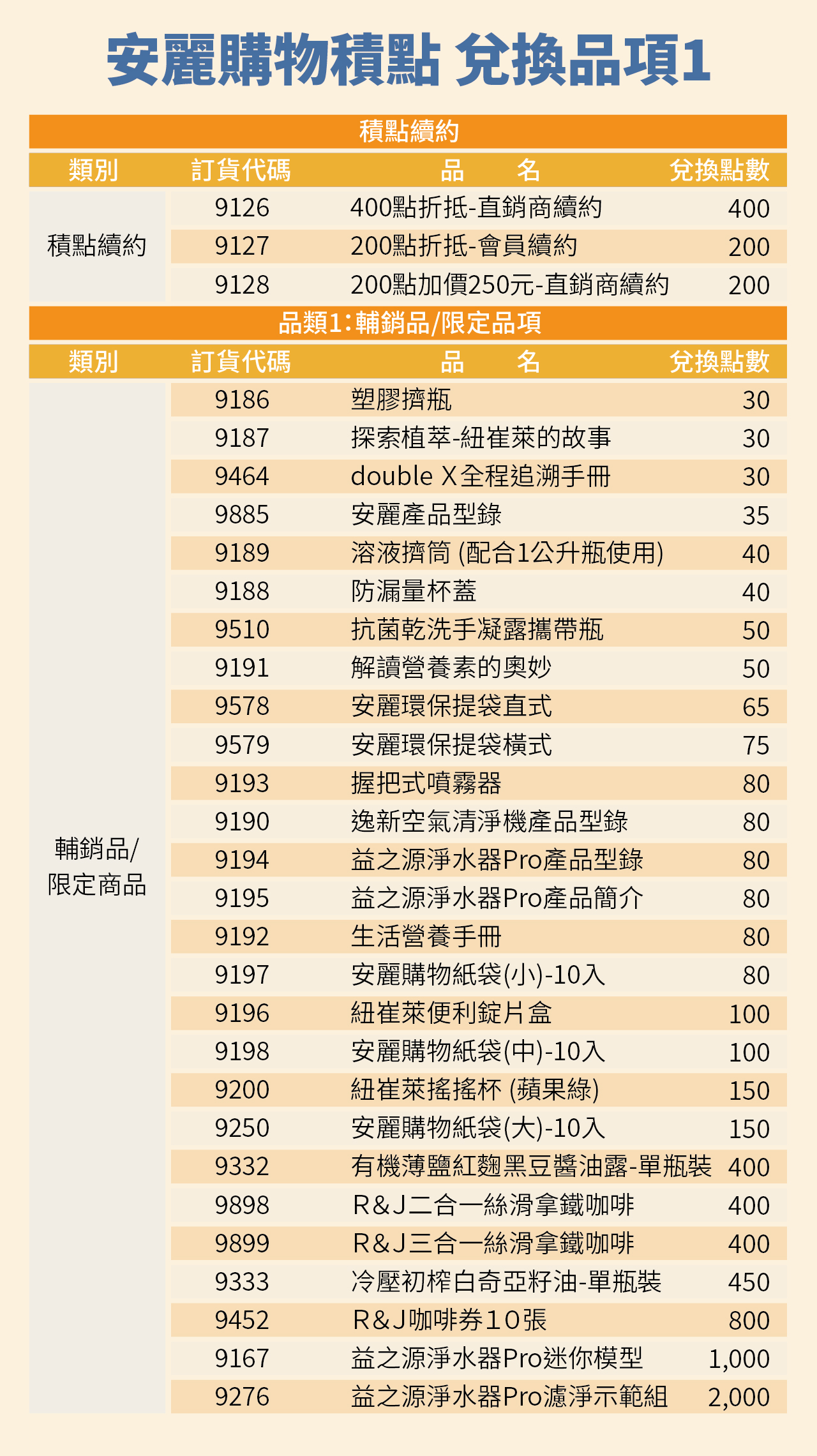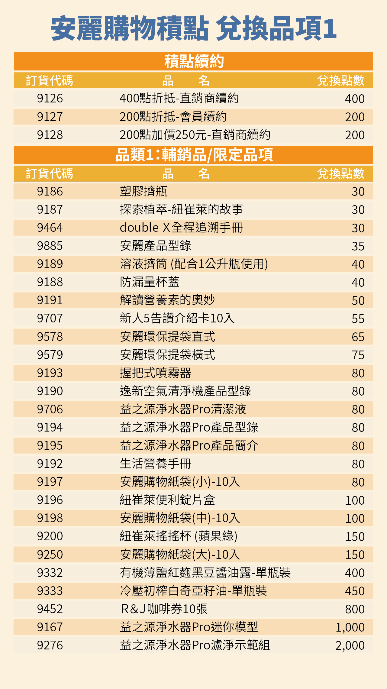 點數累積:購買含有積分額產品,其單筆訂單金額每滿