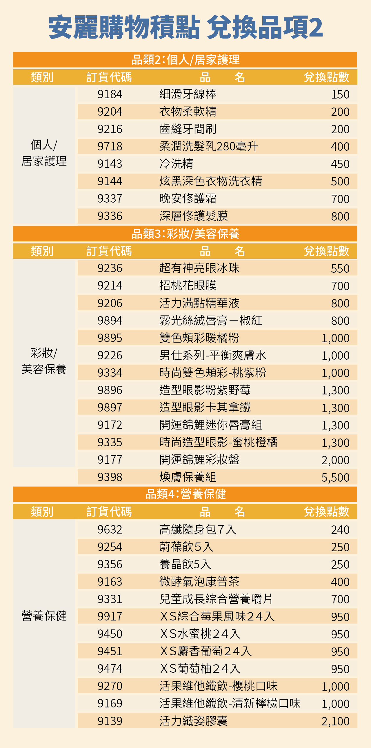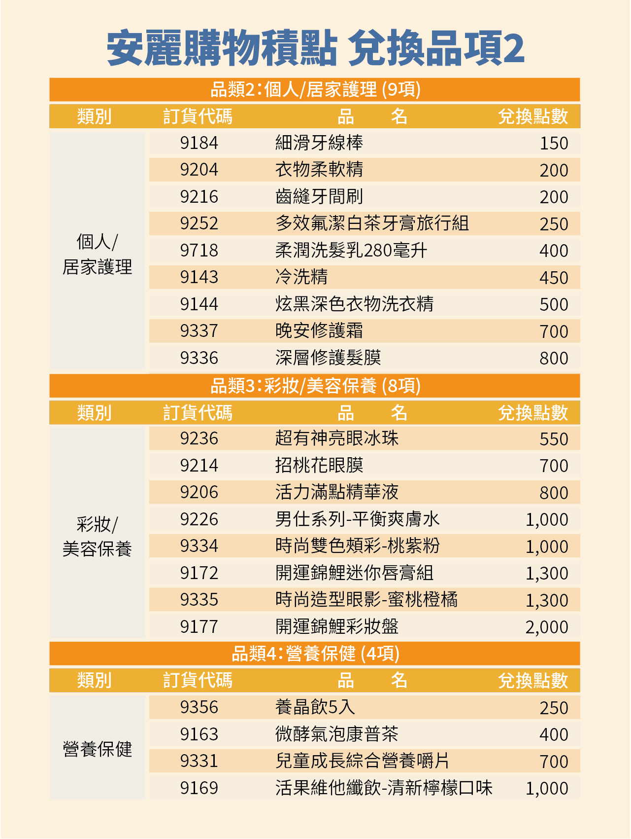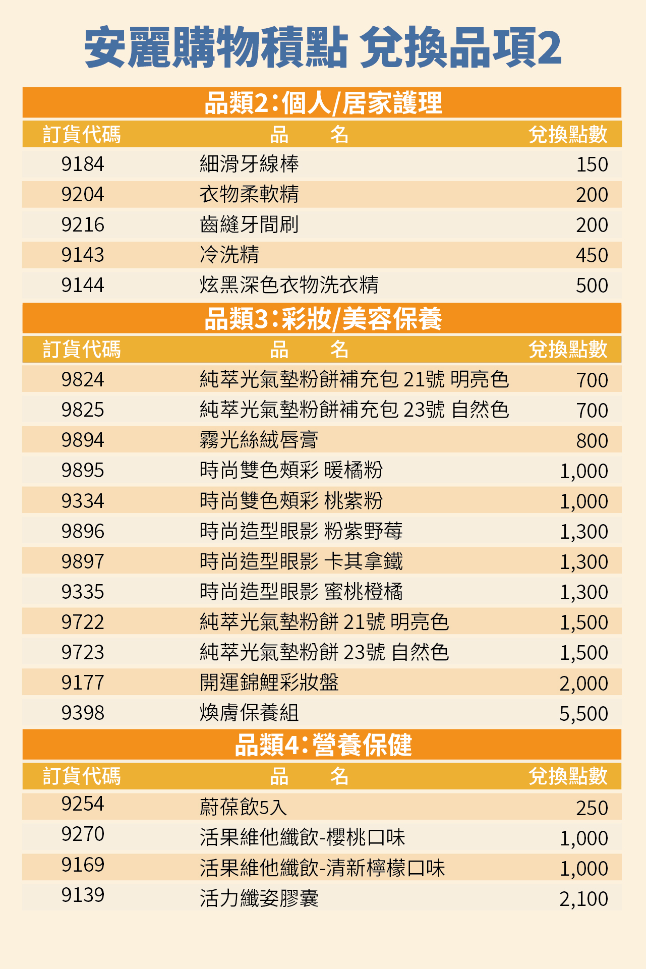 點數累積:購買含有積分額產品,其單筆訂單金額每滿