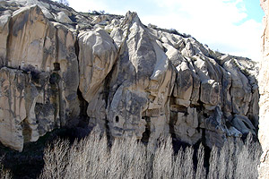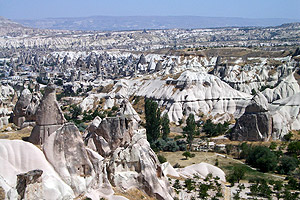 因為火山岩的高度、形狀與大小不一,所以在此形成了奇特的景觀。這裡的居民過著洞穴生活,也有洞穴屋改成了旅館、民宿。前來此處入住洞穴旅館,感覺特別又浪漫。此外,可以體驗一下世界上最奇妙的穴居生活,感受當初基督徒為了躲避塞爾柱土耳其人的迫害,而發展出的「精靈世界」般的另類生活。