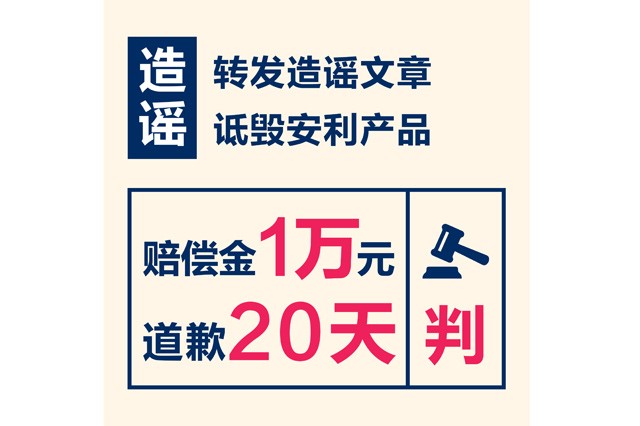在社交媒體發達的今天,針對安麗的各種造謠誹謗層出不窮,對於所有發佈、散播甚至是隨意轉發謠言的企業和個人,安麗一直積極借助法律等管道維護權益,並對惡意造謠行為追究法律責任。