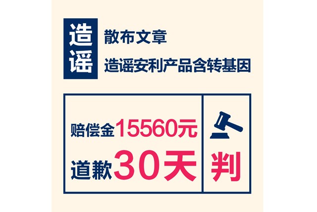 2016年10月,微店店主張某因轉發“安麗蛋白粉基改”的謠言,被法院判令在其微店上連續20日發表道歉文章,並向安利(中國)公司支付賠償金1萬元。